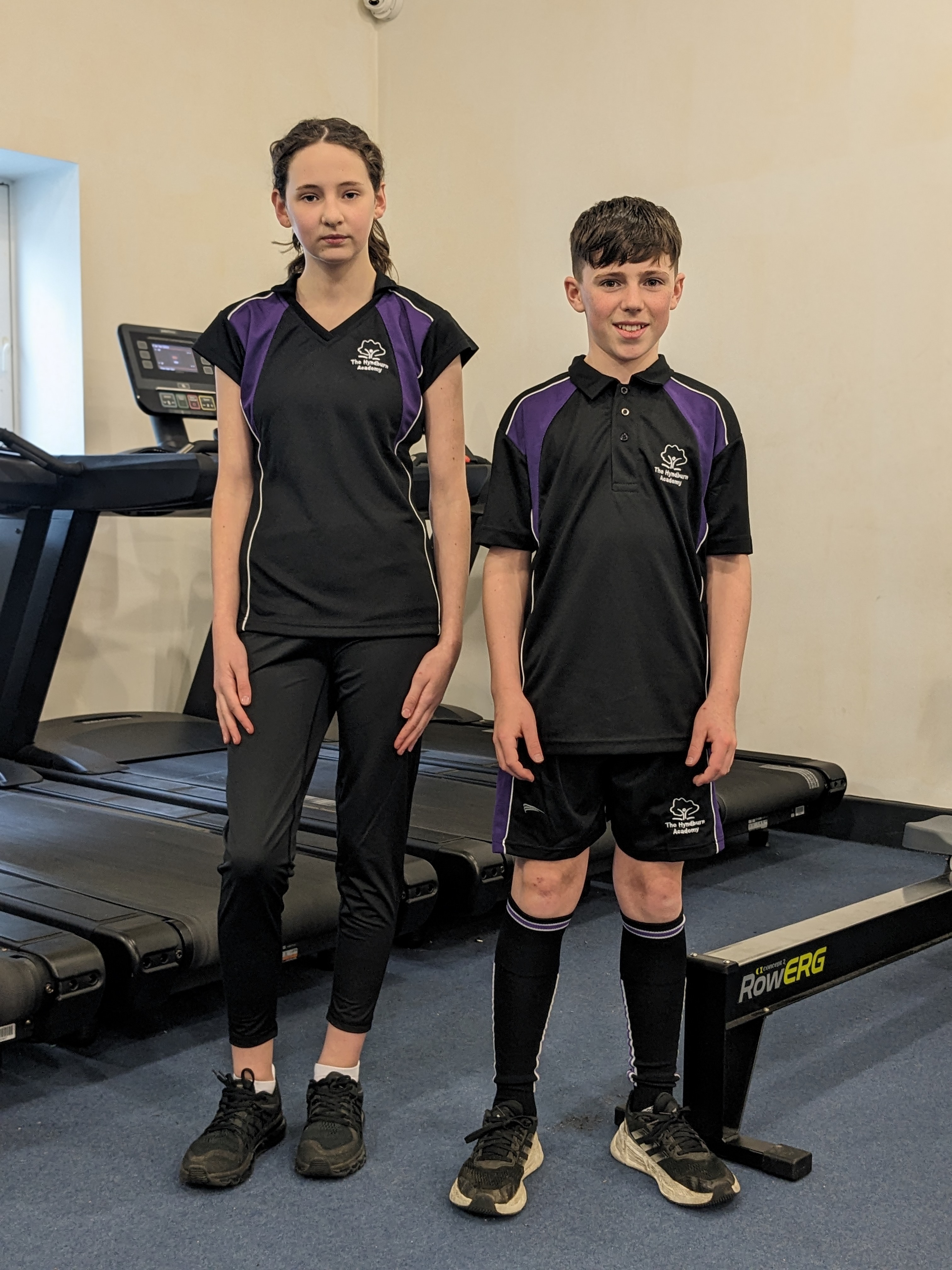 • Hyndburn Academy black and purple logo PE top.